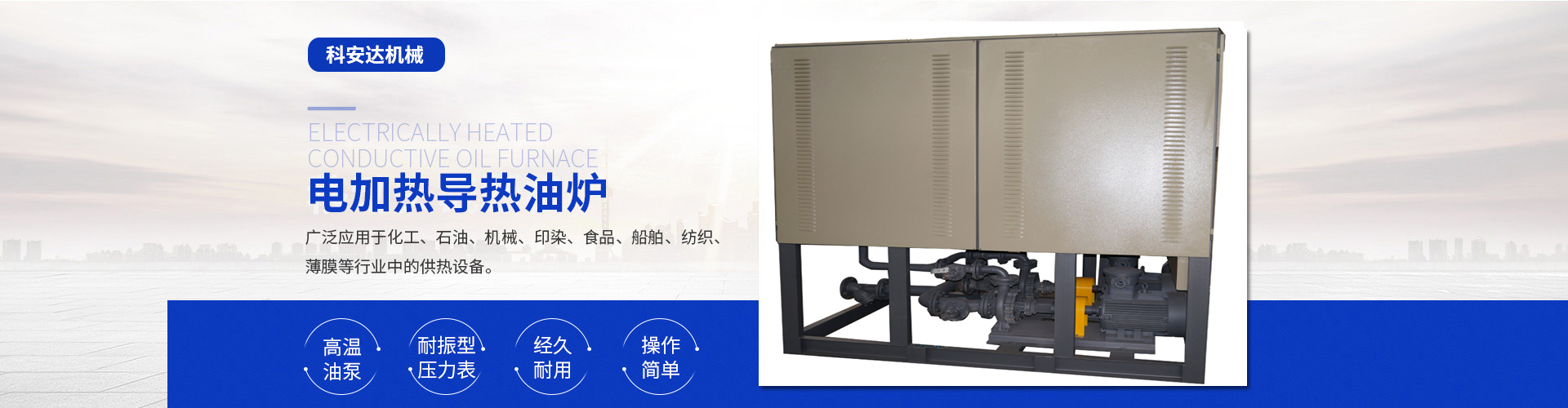 近年來我公司在延用自己的技術(shù)基礎(chǔ)上不斷引進(jìn)先進(jìn)技術(shù)與管理經(jīng)驗(yàn),專業(yè)研發(fā)制造電加熱導(dǎo)熱油爐(有機(jī)熱載體爐)、電磁感應(yīng)加熱器、電加熱爐、熱風(fēng)循環(huán)箱式預(yù)熱爐、風(fēng)道加熱器、空氣加熱罐、電加熱管、高溫電阻爐、保溫烘箱、烘道、鑄鋁鑄銅加熱器、防爆加熱器、遠(yuǎn)紅外加熱管、埋入式遠(yuǎn)紅外陶瓷加熱瓦、陶瓷加熱圈、不銹鋼云母電熱圈、碳化硅遠(yuǎn)紅外電加熱板、電熱帶 、真空清洗爐、三甘醇清洗爐等。產(chǎn)品適用于化纖、紡織、皮革、塑料機(jī)械、電纜機(jī)械、食品機(jī)械、橡膠機(jī)械、冶金、石油、化工、電子、醫(yī)療、海洋工程、家用電器等行業(yè)。同時(shí)可根據(jù)客戶使用與現(xiàn)場安裝的需要,設(shè)計(jì)、制造特殊規(guī)格的上述設(shè)備,企業(yè)以其先進(jìn)技術(shù)、合理的價(jià)格,周道的服務(wù)使產(chǎn)品遠(yuǎn)銷國內(nèi)外。
